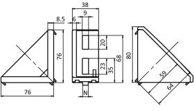 To connect two aluminium profiles or panels at right angles; the gusset can be closed with the cover cap