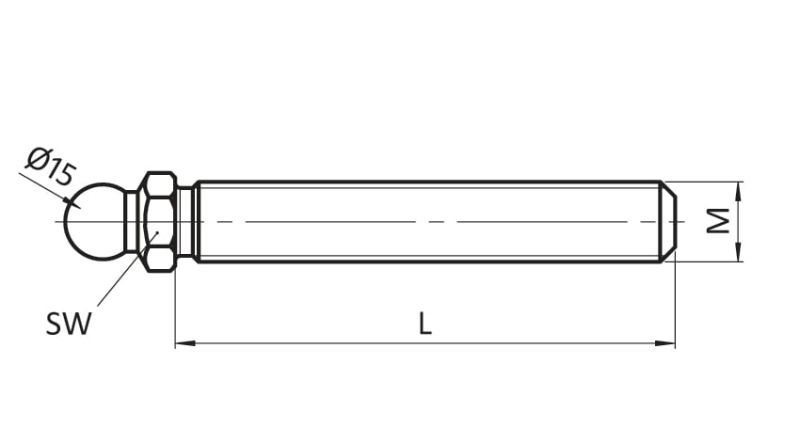 M10x45 Threaded Rod for Swivel Feet, Ball Joint 15